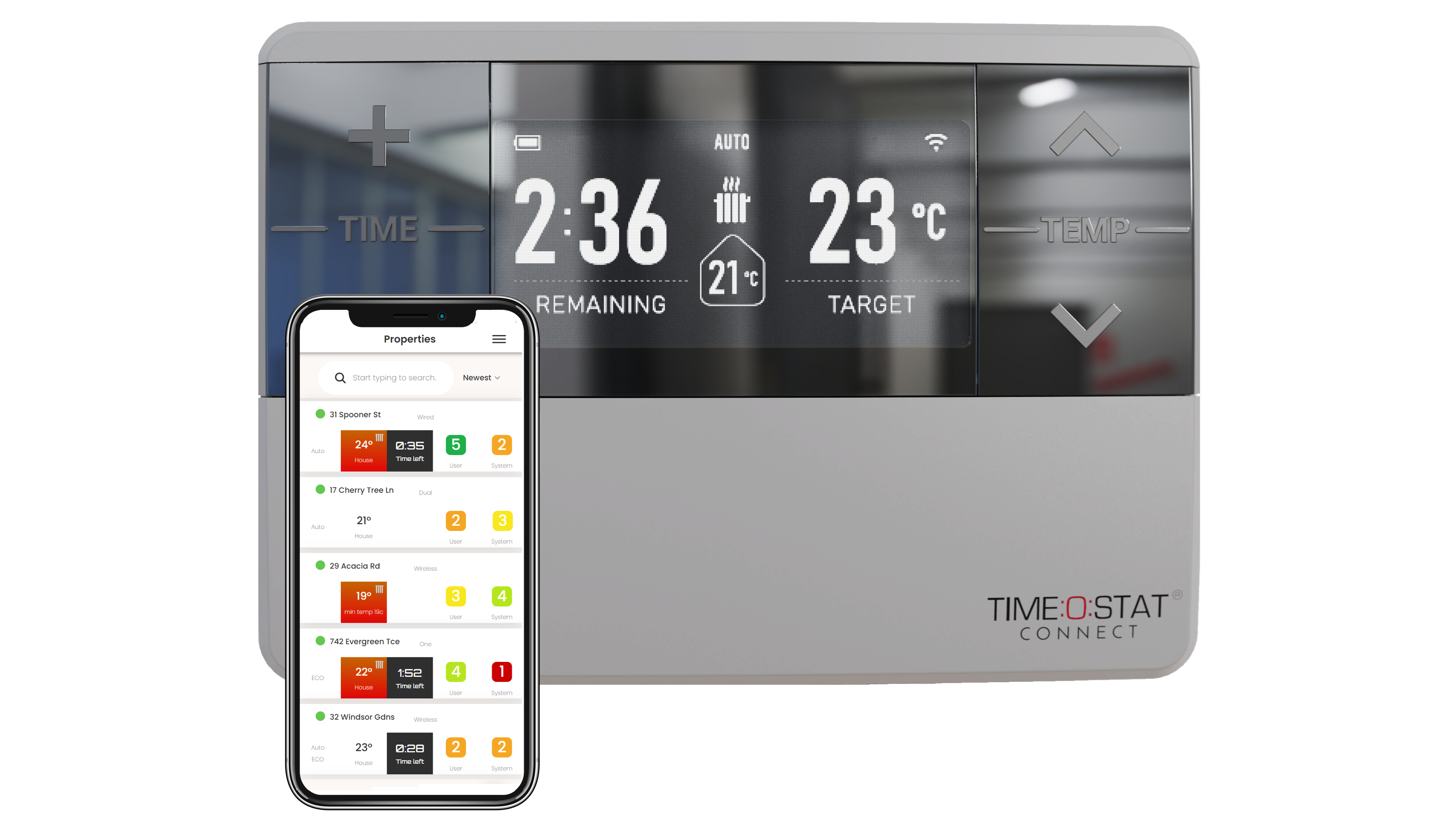 The TIME:O:STAT is a replacement for the current central heating room thermostat. It simply restricts the heating to a time period determined by the installer. By default this is 2 hours. The tenants have full control of the heating. But they can only have it running for 2 hours at a time. Meaning the heating can not be left running constantly and will turn itself off when the tenant goes to work/lectures/sleep/holiday/out in the evening. Tenants love it as they can have the heating on whenever they like. Landlords love it because it saves both time and money as there is no need to micromanage the heating system. There are many additional installer functions and settings to the TIME:O:STAT which the landlord can set-up prior to installation to tailor it to their requirements.