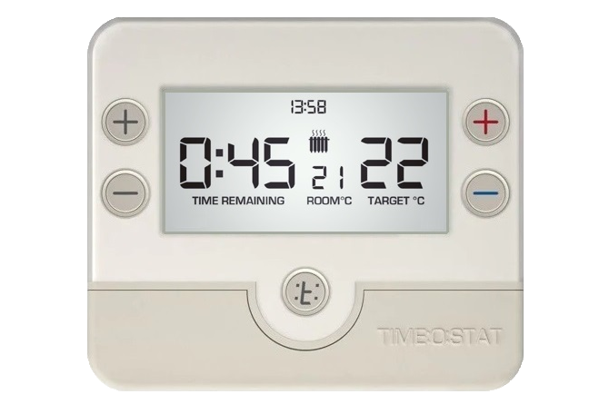 This version of the TIME:O:STAT controls both heating and hot water. This is perfect for heating systems with hot water tanks, that do not already have a timer for the hot water. Typically new heating system installations.